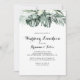 Cette invitation à la douche nuptiale pour un mariage de verdure tropicale est parfaite pour un wedding shower rustique. Le design est composé de bouquets feuille de palmiers verts avec de belles fleurs blanches.