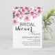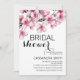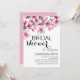 Invitation à la douche nuptiale moderne et minimale avec des branches de fleurs de cerisier rose aquarelle et texte de calligraphie dynamique.