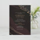 Cette invitation à la nuptiale Metallic Geode est parfaite pour une mariée moderne et unique. Le design présente des éléments dorés sur des textures noires et bordeaux. Un design unique et tendance.