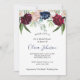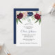 Personnalisez ces élégantes invitations à la douche nuptiale florale bleu marine. L'avant de la carte est magnifique avec un éventail de fleurs rousses et de verdure marine et bordeaux. Ajoutez facilement vos détails personnalisés pour faire la présentation parfaite.