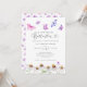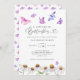 Elégante carte d'invitation à la douche nuptiale avec aquarelle illustrant les papillons et les fleurs. Le texte dit "Une vie de papillons."