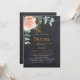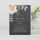 Arrière - plan de tableau de bord. Décoré d'or rose et de fleurs roses rousses, de fleurs roses et de feuilles d'eucalyptus vert aquarellés, de sprigs, de verdure et d'une fausse feuille d'or. Personnalisez et ajoutez le nom de la mariée à être et les détails du parti. Texte blanc et doré.