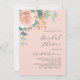 Invitation Fête des mariées de luxe pêche rose à fleurs or