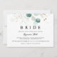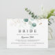 Cette invitation rustique à la calligraphie florale or mariée nuptiale est parfaite pour un wedding shower simple. Cette conception artistique présente des feuilles d'or dessinées à la main et des feuilles d'aquarelle vert d'eucalyptus, une beauté naturelle inspirante.