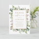 Cette invitation à la douche nuptiale comprend des eucalyptus à l'aquarelle peinte, des feuilles verts, des baies rouges, des branches de pin et un cadre rectangulaire en faux or avec une calligraphie élégante. Pour une personnalisation plus avancée de cette conception, cliquez sur le lien "Customiser plus loin". Des articles correspondants sont également disponibles.