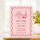 whimsical, dessiné à la main, écrit à la main, illustré à la main, invitation à la douche nuptiale, pizza douche nuptiale, rouge et rose, amour et pizza, vin, mariage italien