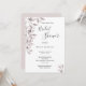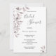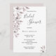 Une invitation branchée à la douche nuptiale en rose blanc et poussiéreux, rose. Un arrière - plan blanc chic à l'avant. Décoré de sprigs botaniques et de feuillage de couleur rose poussiéreux. Un grand script à main moderne, typographie avec le texte : Fête des mariées. Modèles pour que la mariée soit le nom et les détails du parti. Texte gris foncé. Dos : arrière - plan de couleur rose poussiéreux.
