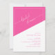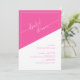 Invitation vos invités à célébrer avec style en utilisant notre Audacieux Script géométrique Bridal Shower Invitation. Ce design moderne et élégant présente un arrière - plan rose et blanc géométrique et impressionnant, créant un look dynamique et élégant. L'expression "douche nuptiale" est présentée dans un script blanc sophistiqué sur un arrière - plan rose diagonale audacieux, en parfaite complémentarité avec le thème géométrique. Personnalisez facilement votre invitation : customisez le nom, la date, le lieu et les détails RSVP de la mariée dans une ligne de bordure blanche chic. Le texte est rendu dans une combinaison de la typographie rose sans serif et serif sur un arrière - plan blanc en diagonale, améliorant la lisibilité et l'attrait visuel. Ce design unique allie style contemporain et touches élégantes, ce qui en fait le choix idéal pour une douche nuptiale mémorable.