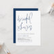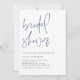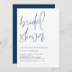 Invités Invitations à votre événement avec cette invitation minimaliste à la douche nuptiale. Il dispose d'un minimaliste bleu marine écrit à la main avec une simple typographie. Personnalisez en ajoutant les noms, la date, l'heure, le lieu et d'autres détails. Cette simple invitation de mariée script est disponible sur d'autres cartes.