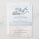 Une sirène et un dauphin nuptiale invitation sur un bleu océanique serein avec jetée. Une invitation à la douche à la nuptiale moderne et fantaisiste avec une ambiance océanique sereine et une police décorative élégante. Personnalisez avec vos informations.