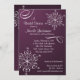 Jolie conception décorative de flocon de neige sur un violet d'aubergine foncé. Contactez-moi pour obtenir des options de couleur supplémentaires. Changez de police et de texte pour les douches nuptiales, les fêtes de fiançailles, les fêtes de fin d'année, les anniversaires ou toute occasion.