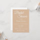 Style simple, invitation à la douche nuptiale qui comprend un arrière - plan de couleur beige tendance ainsi que le nom de la future mariée et l'heure et l'emplacement de l'événement, contact, etc, imprimé en blanc, stylisé. Personnalisez votre invitation en remplaçant le texte par vos propres informations sur la douche nuptiale. Sélectionnez le style et la quantité de papier d'invitation.