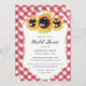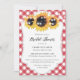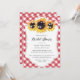 Invitation à la douche nuptiale en vichy rouge avec tournesols et lampes à cordes sur un arrière - plan à damiers rouge. Éléments correspondants disponibles.