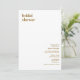 Cette "Invitation de douche nuptiale de type moderne simple" donne le ton d'une célébration sophistiquée et mémorable. C'est le choix parfait pour annoncer une douche nuptiale avec style et grâce. Avec son design minimaliste mais luxueux, cette invitation en dit long sur l'événement spécial que vous planifiez. Commandez la vôtre aujourd'hui et préparez-vous à créer des souvenirs avec vos proches.