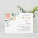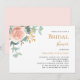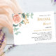Un arrière - plan blanc chic. Décoré d'or rose et de fleurs roses rousses, de fleurs roses et de feuilles d'eucalyptus vert aquarellés, de sprigs, de verdure et d'une fausse feuille d'or. Personnalisez et ajoutez le nom de la mariée à être et les détails du parti. Lettres noires et dorées. Dos : or rose couleur arrière - plan.