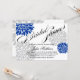 © 2013 Socialite Designs. Notre belle écriture / calligraphie texte de douche nuptiale et les éléments de design de fleurs couleur bleu et gris argenté royal ajoutent une touche d'élégance simple à cette invitation de douche nuptiale. Remplacez facilement notre texte modèle pour votre événement spécial. Tous les éléments de conception peuvent être redimensionnés, déplacés ou supprimés individuellement pour vous convenir. Appuyez sur le bouton "Customiser" pour afficher et modifier la police, la disposition du texte ou customiser les éléments de conception.