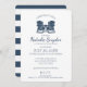 Bleu marine Adirondack chaises plage de la douche à thème de la nuptiale avec rayures bleues et blanches sur le dos de cette élégante et classique invitation wedding shower pour le futur marié et marié. Personnalisez comme préféré.