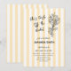 Bienvenue à ceux qui sont chers pour célébrer une mariée pour être avec cette nouvelle invitation de douche nuptiale hors du marché ! Avec des rayures de cabane jaune et blanc avec un bouquet floral, cette invitation est parfaite pour ceux qui adorent une esthétique moderne avec une touche de féminité. Le thème parfait pour une douche nuptiale estivale, surtout au bord de la piscine. Fraîches, ludiques et simplement modernes sont les grands descripteurs de cette invitation !