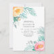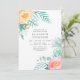 Menthe, rose et jaune exotique invitation à la douche nuptiale estivale avec des pivoines, eucalyptus, rosehips, succulent, lisianthus, feuilles menthol et succulents.