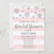 Invitations de douche nuptiale pour l'hiver ou Noël avec des flocons de neige argentés et des rayures rose pâle.