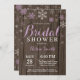 Invitation Rustique À La Douche Nuptiale D'Hiver. Flocon de neige violet et blanc. Invitation de Fêtes des mariées de Noël. Arrière - plan rustique en bois. Country Vintage Retro Grange. Pour plus de personnalisation, cliquez sur le bouton "Customiser" et utilisez notre outil de conception pour modifier ce modèle.