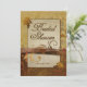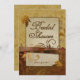 Des couleurs chatoyantes et une texture damassée avec un automne se sentent embellir cette élégante invitation à la douche nuptiale. Joli or brun, tons brun cuivre et motif à feuilles florales. Accentuation de ruban texturé avec recouvrement de burlap rustique clair sur le panneau central. Touche finale avec tourbillon de feuille de cuivre et accents de feuille. Customisez le texte avant et arrière de l'invitation avec vos informations. Les articles correspondants sont disponibles dans mon magasin.