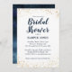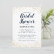 Elégante invitation à la douche nuptiale avec parties scintillant or et bleu marine aquarelle ombre. Ce modèle a déjà des textes qui contiennent toutes les informations dont vous avez besoin pour votre événement. Les textes sont facilement personnalisables en ligne.