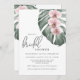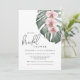 Prévoyez une belle douche tropicale à thème avec ce design botanique chic. Il dispose d'un trio d'orchidées roses délicates et d'une belle feuille de monstère aux aquarelles douces. Le design est à la fois simple et élégant, avec un look minimaliste dynamisé par les éléments botaniques tropicaux. Que vous fêtiez autour d'une piscine ou dans et autour d'une zone côtière, ce design s'affiche dans le style de l'île. Personnalisez le modèle de texte facile à utiliser avec les détails de votre événement.
