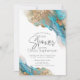 Invitation à la douche nuptiale - design moderne Abstrait dans les tons de bleu turquoise, turquoise et bronze avec la texture fausse or présenté sur cet élégant art d'encre d'alcool et de peinture aquarelle, accentué de calligraphie de style manuscrit. Utilisez notre modèle facile à customiser pour personnaliser avec vos détails - Design étonnant © by WhimsicalArtwork™ Il s'agit d'une suite de papeterie Mariage complète avec mariage, baby shower et autres articles de papeterie d'évènements correspondants. encre abstraite, encre marbrée, turquoise, turquoise aqua bleu, bronze fausse or texture, marbrée,