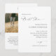 Invitation de douche nuptiale moderne avec un design simple et minimal noir et blanc avec une typographie élégante ainsi qu'une police serif traditionnelle classique. Le dos a votre monogramme, une photo de paysage et tout autre détail ou message supplémentaire. L'aménagement minimaliste se marie bien avec le thème de la douche nuptiale.