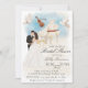Élégant invitation de douche nuptiale avec mariée et chambre à un Piano classique pittoresque avec violon, deux colombes volant dans le ciel, et un arrière - plan d'or avec deux colombes à l'envers