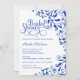 Invitation Fête des mariées élégante Royal Blue Swirls