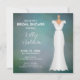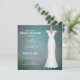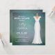 Fête des mariées Elegant Soft Green Invitation conçu avec un croquis Bridal Gown sur un arrière - plan vert doux avec texte blanc. Le texte de l'invitation comprend : Nom de l'épouse, Date de la douche, Heure, Lieu et Détails de l'hôte et du RSVP. L'envers est un arrière - plan vert doux correspondant. Pour personnaliser, insérez simplement vos détails dans notre modèle facile, en remplaçant l'exemple de texte.