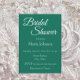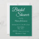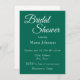 Style simple, invitation à la douche nuptiale qui comprend un arrière - plan de couleur vert émeraude tendance ainsi que le nom de la future mariée et l'heure et l'emplacement de l'événement de fête, contact, etc, imprimé en blanc, stylisé. Personnalisez votre invitation en remplaçant le texte par vos propres informations sur la douche nuptiale. Sélectionnez le style et la quantité de papier d'invitation.