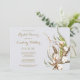 L'invitation à la douche nuptiale rustique est faite de coton floral avec plumes de faisan sur arrière - plan gris clair. Coordonnées avec Rustic Cotton jeu de mariées.