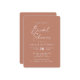 Minimal Simple Clay Terracotta Solid Couleur Douche nuptiale Invitations. Ce design mariage moderne ou d'Invitation de douche nuptiale est simple et élégant avec un arrière - plan uni et une police de calligraphie de script signature tendance. Montré dans la couleur Mariage en terre cuite argileuse. La collection Minimal Solid Color Mariage est sûre de rendre votre mariage mémorable et beau ! Pour en savoir plus, recherchez les collections mariages 2022 de Chic Paperie pour voir toutes les tendances design et couleurs mariages de cette année.
