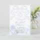 Cette élégante invitation à la douche nuptiale comprend un couple de cygnes avec un arc/ruban et des fleurs/fleurs en bleu. Au verso, un arrière - plan bleu bébé clair avec motifs de toile de jouy en bleu. Personnalisez-le selon vos besoins. Vous pouvez trouver des produits correspondants dans mon magasin.