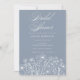 Élégante, moderne et d'inspiration nature, cette invitation à la douche nuptiale est composée d'un arrière - plan bleu poussiéreux, de délicats contours fleurs sauvages blancs et d'un élégant script blanc. Parfait pour les douches nuptiales du printemps, de l'été ou de l'automne, avec un thème bleu poussiéreux, une ambiance de garden party ou un charme boho rustique. Idéal pour un brunch nuptial chic en plein air ou dans un cadre chaleureux et jardin. ✨ personnalisable | Boho Floral | Fête des mariées de jardin 🎨 esthétique : Bleu roux, Rustique, Minimaliste, 🌸 lunatique Parfait pour les douches nuptiales du printemps ou de l'automne, les rassemblements en plein air, les mariées boho