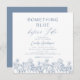 Vous cherchez une invitation à la douche de nuptiale magnifique et mémorable? Notre invitation "Quelque chose de bleu avant de faire" est le choix parfait! Avec un design époustouflant et une teinte bleue douce, cette invitation impressionne vos invités et donne le ton pour une douche nuptiale inoubliable.
