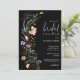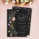 Élégantes invitations à la douche nuptiale avec d'élégants fleurs sauvages d'aquarelle et vos détails en lettrage chic sur un arrière - plan noir. CORRESPONDANCE d'objets dans notre collection.
