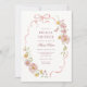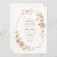 Invitation à la douche nuptiale avec cadre de fleurs roses d'aquarelle avec des rubans et des arcs. Customisez avec vos informations pour que la mariée soit mariée. Cliquez sur "cliquer pour customiser plus loin" pour modifier le style, la taille ou la couleur de la police.