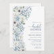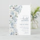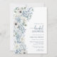 Invitation à la douche nuptiale Florale Bleue. Entrez dans un jardin d'une beauté botanique et découvrez un design d'invitation époustouflant avec de belles fleurs d'aquarelle peintes à la main. Les délicates roses bleu, crème et blanc et la végétation sauge verte d'eucalyptus créent une élégance rustique, parfaite pour votre événement spécial ! La police bleu-gris et les subtiles touches bleues complètent parfaitement le design intemporel. Laissez cette invitation exquise express votre élégance romantique rustique et le style intemporel.
