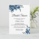 Cette invitation moderne à la douche nuptiale à fleurs bleues est parfaite pour une douche de mariage d'hiver. Cet élégant design floral peint à la main présente des fleurs gracieuses bleues, bleues foncées et indigo aux feuilles verts, représentant une beauté naturelle majestueuse.