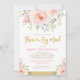 Aidez à célébrer la mariée à être de l'autre côté de la distance avec cette belle invitation à la douche nuptiale. Le design présente de jolies roses roses roses vertes vertes et dorées.