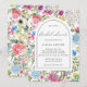 Flore Arc Frame Douche nuptiale Invitation avec de jolies fleurs de pays sauvages en violet, lavande, feuilles verts et plus, avec un élégant éditable arrière - plan