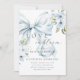 Célébrez la future mariée avec cette élégante invitation à la douche nuptiale "Amour en Fleur". Dotée d'une délicate aquarelle aux tons bleu doux, cette invitation dégage charme et raffinement. Un arc bleu foncé et une typographie de script gracieuse apportent une touche romantique, ce qui en fait le choix idéal pour une fête de jardin, une soirée printanière ou une douche nuptiale à thème floral.