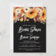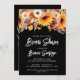 Bleu noir et blanc Invitations à la douche nuptiale Florale avec fleurs et verdure.