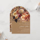 Cette invitation à la douche nuptiale d'automne boho comprend un magnifique collage de roses de chou, roses de jardin, ranunculus, baies, pommes et feuilles. L'invitation est placée sur un arrière - plan marron avec la date, l'heure et l'emplacement de la douche nuptiale dans une police de caractères de bon goût. Le design bohème et les couleurs automnales apportent une touche de fantaisie et de romantisme, et le design général est parfait pour célébrer la future mariée avec vos proches d'une manière élégante et festive.