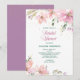 Cette invitation à la douche nuptiale présente de jolis bordures de lavande pastel et de fleurs roses en haut et en bas. Les fleurs sont nichées dans de doux feuilles verts, et la bordure supérieure a une couche de confettis doré brillant. Au centre se trouve votre texte personnalisé en vert. L'arrière de l'invitation est solide assorti lavande violet, et a également la superposition des confettis. Belle pour les douches nuptiales du printemps et de l'été! *Crédit de design pour Watercolor Cliparts sur test.