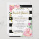 Ces élégantes invitations à la douche nuptiale présentent des rayures modernes en noir et blanc avec de beaux roses d'aquarelle et des fleurs évoquant une atmosphère assez vintage. Le texte est encadré d'un faux papier doré avec un arrière - plan blanc. Le texte "Fête des mariées" est également réalisé dans un style de feuille d'or assez imitant. Le parfait mélange de moderne et de traditionnel ! Les amis et la famille aimeront l'élégance simple et moderne de cette carte. Il semble particulièrement luxueux avec les options papier "support" et "Luxe Pearl Shimmer". Voir ma boutique pour coordonner les articles (et contactez-moi si vous avez besoin de quelque chose d'autre créé pour coordonner!) ©2016 Mariages*n*Whimsy